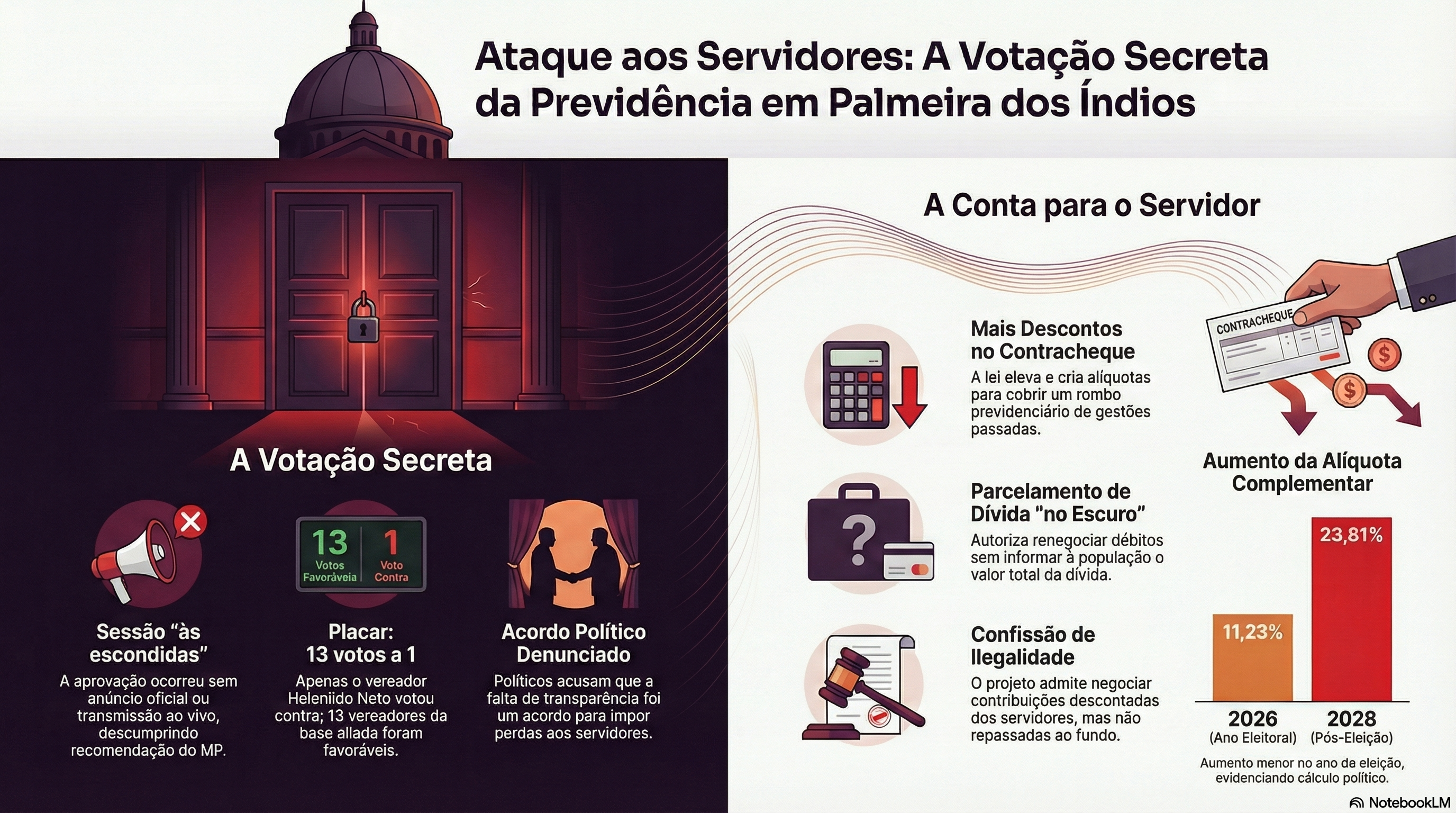 A denúncia coloca o Legislativo no centro do debate e transforma a votação em um divisor de águas. Se os projetos avançarem, não será apenas uma decisão técnica ou fiscal — será uma escolha política com impacto direto na vida de quem construiu, ao longo de décadas, o serviço público de Palmeira dos Índios.