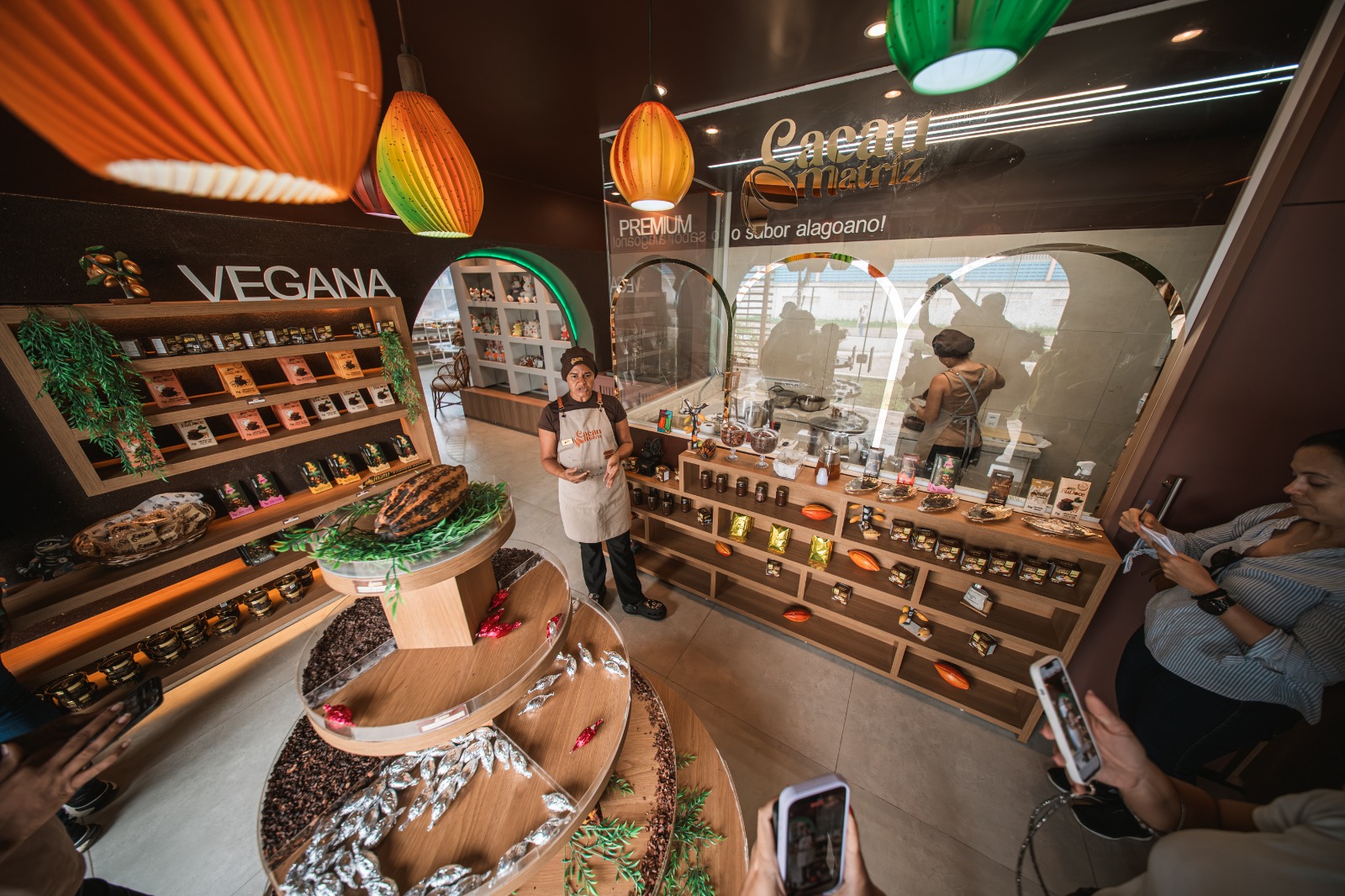 Inaugurada em 21 de novembro, a loja Cacau Matriz funciona como vitrine e mini fábrica. Ali, o cliente não apenas compra, mas acompanha a produção em tempo real. “Diferente das grandes franquias, aqui a pessoa não vem só comprar. Ela acompanha o processo, desde a plantação do cacau, até chegar na loja, e ver o chocolate sendo feito para logo depois degustar os produtos. É uma experiência completa”.