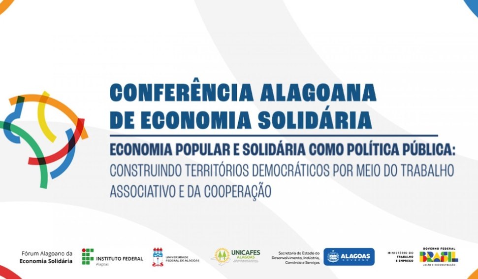 Com o tema “Economia Popular e Solidária como Política Pública: Construindo territórios democráticos por meio do trabalho associativo e da cooperação”, a conferência coordenada pela Superintendência de Cooperativismo, Associativismo e Economia Solidária, é gratuita e aberta ao público. As inscrições estão disponíveis no site: https://doity.com.br/conferencia-alagoana-de-economia-solidaria.