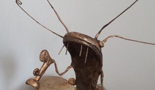 As estruturas foram montadas com ferro, metal, madeira, e outros resíduos. Por cima de uma base de ferro, está a imagem esculpida de um bagre animado, com uma câmera na mão e uma pose de curioso.