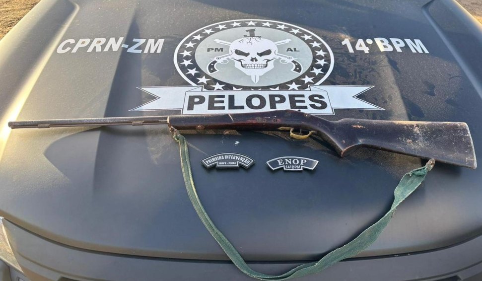 Não havia pessoas presentes no momento da abordagem, sendo o armamento recolhido e apresentado na central de flagrantes para as providências cabíveis.