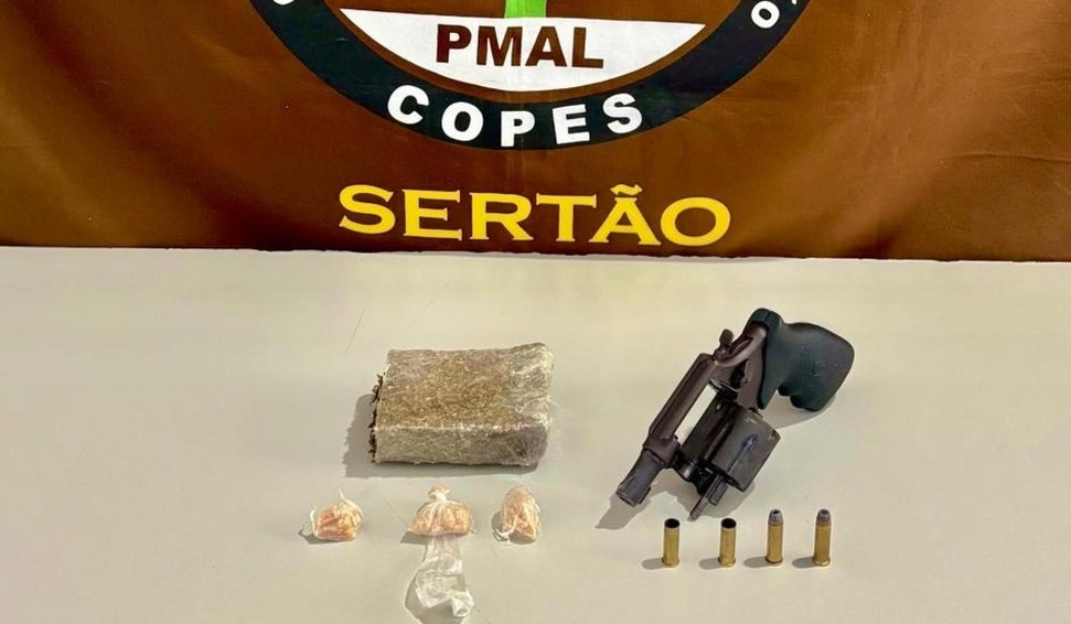 Uma arma de fogo e quase 300 gramas de entorpecente foram apreendidos durante uma intervenção da Companhia de Caatinga, na manhã desta quarta-feira (9), em Olho D’Água das Flores, Sertão de Alagoas.
