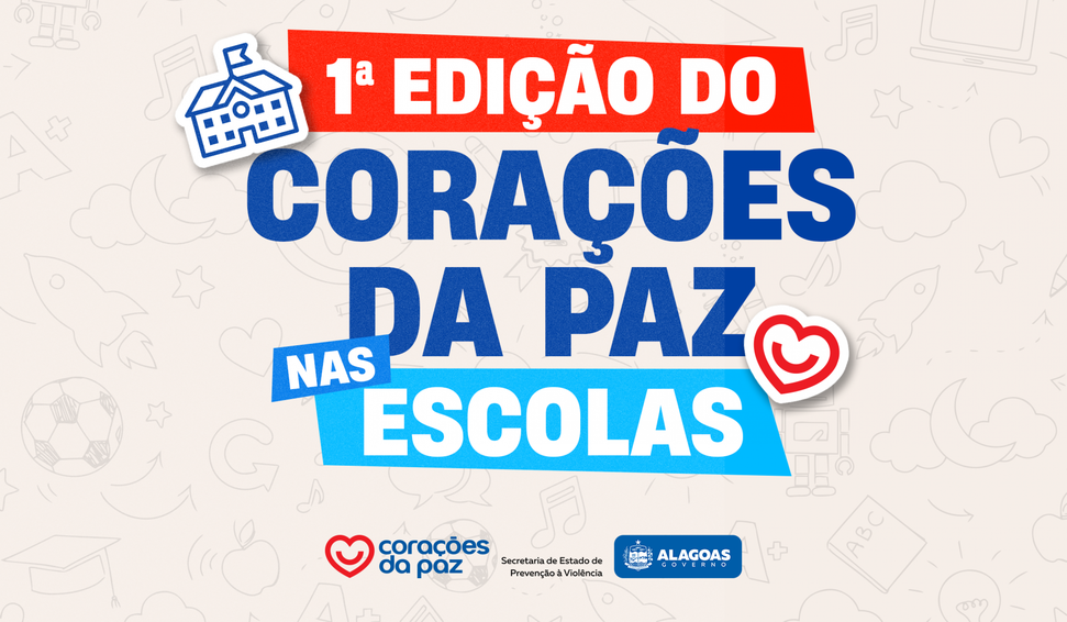 Com foco na promoção da cidadania e na prevenção à violência, o Governo de Alagoas realiza no sábado (26), a primeira edição do programa Corações da Paz nas Escolas, uma iniciativa inédita coordenada pela Secretaria de Estado de Prevenção à Violência (Seprev). A ação acontecerá das 8h às 16h, na Escola Estadual Maria Rita Lyra de Almeida, no bairro do Vergel, em Maceió.