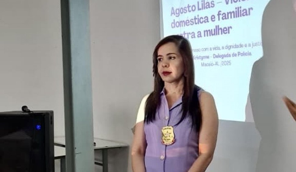 A delegada Kelly Kristynne, da Delegacia Especializada de Atendimento à Mulher 2 (DEAM 2), participou, nesta segunda-feira (25), de uma palestra promovida pela instituição “O Consolador”, no bairro do Prado, em Maceió. O encontro abordou a atuação das delegacias especializadas na prevenção e enfrentamento à violência doméstica e familiar.