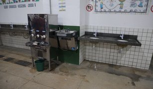 Além da água que chega à escola não ter nenhuma comprovação de qualidade, o único bebedouro disponibilizado aos alunos estava em péssimo estado, inclusive com vazamento. “Todo mundo traz sua água de beber de casa em uma garrafinha, se não aqui a gente passa sede”, disseram os estudantes. Os professores, por sua vez, se unem e compram água mineral, que fica em um bebedouro exclusivo na sala deles.