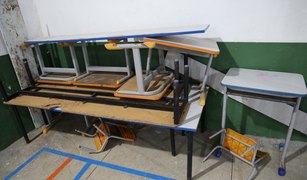 Nos banheiros, a situação é igualmente crítica: portas com defeito, vasos sem assentos, ausência de papel e de sabão para higienização das mãos. Quando chove, a situação piora porque alguns espaços dentro do prédio alagam. A escola também não oferece nenhum curso profissionalizante ao público da EJAI.