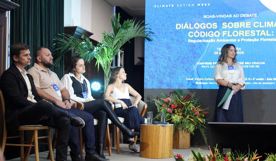 No dia 26, a técnica Isabel Nepomuceno esteve presente na palestra “Diálogos sobre clima e Código Florestal: regularização ambiental e proteção florestal”, realizada durante o evento Rio Climate Action Week, no Centro Cultural Banco do Brasil (CCBB), no Rio de Janeiro.