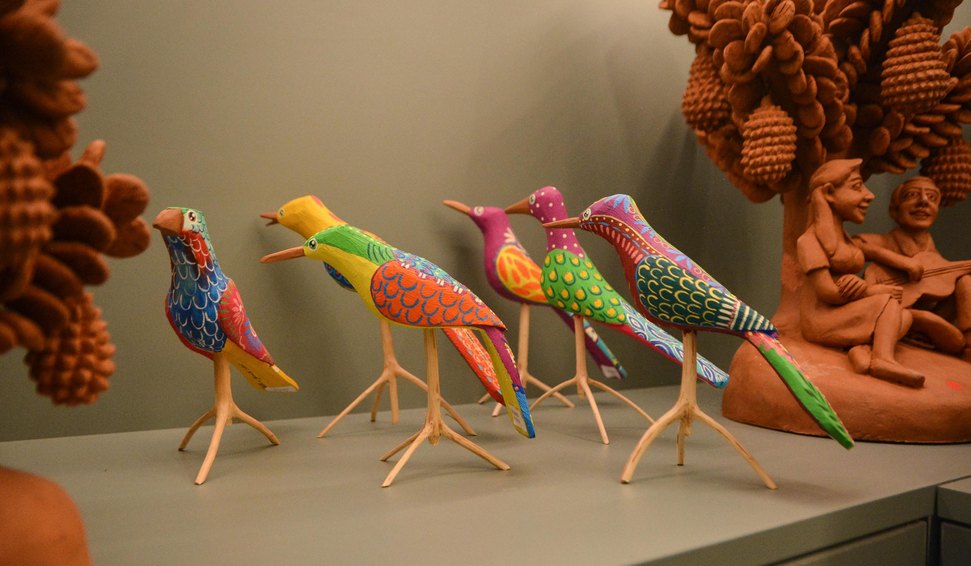 Jailton descobriu seu talento para dar forma a bichos, entalhando e esculpindo a madeira, inspirado no mestre Fernando, um dos grandes nomes do artesanato alagoano. Jamile entrou em cena e tornou as obras no seu pai mais especiais, quando passou a pintar os pássaros produzidos por ele.