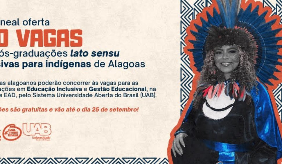 Os indígenas alagoanos poderão concorrer às vagas para as especializações em Educação Inclusiva e Gestão Educacional, na modalidade EaD, pelo Sistema Universidade Aberta do Brasil (UAB), em parceria com a Universidade Estadual de Alagoas (Uneal). Estão sendo ofertadas 220 vagas, distribuídas nos polos de Teotônio Vilela e Piranhas.