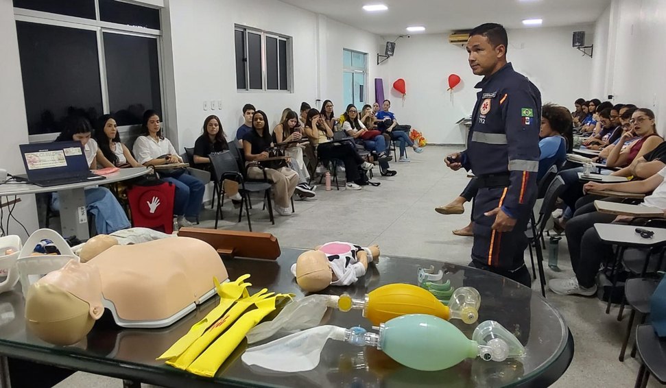 No último sábado (13), acadêmicos de Medicina e Enfermagem participaram de curso intensivo ministrado pelos enfermeiros Breitner Lima e Eliza Figueiredo, abordando temas como hemorragias, engasgo, PCR, desmaio, queimaduras e crises convulsivas.