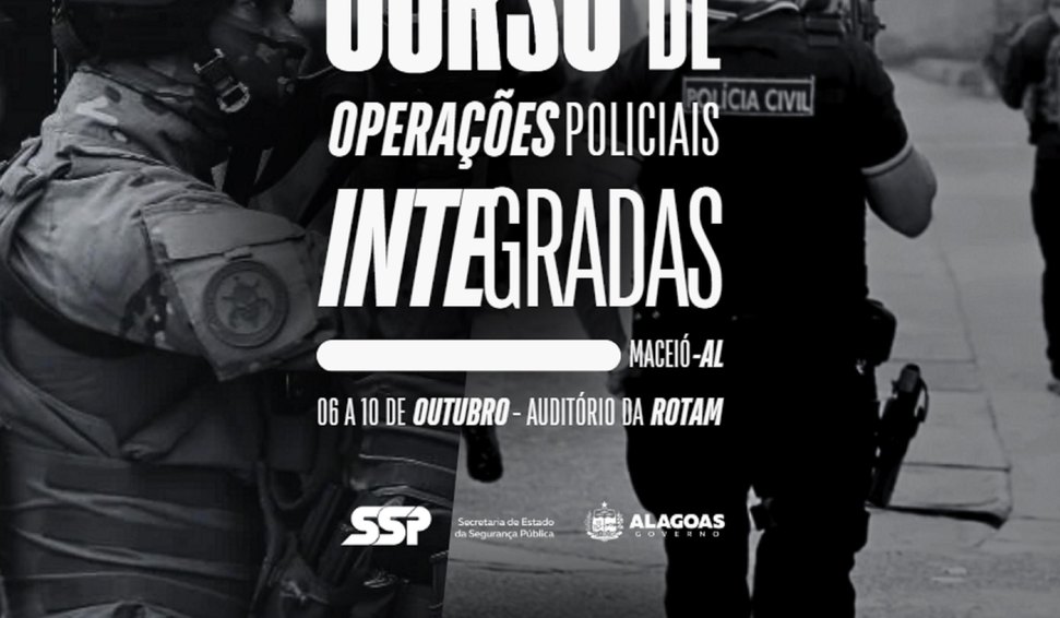 As secretarias estadual e nacional de Segurança Pública abriram duas capacitações voltadas aos agentes que atuam em Alagoas. Os cursos de Plano de Gestão de Crises de Segurança na Cidade e de Operações Policiais Integradas ocorrerão de forma simultânea entre os dias 6 e 10 de outubro, em Maceió, com o objetivo de qualificar visando à atuação em ocorrências de alta complexidade e alta intensidade.