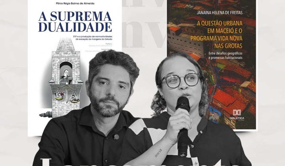 A literatura alagoana ganhará mais duas obras para seu acervo na próxima quinta-feira (25), com o lançamento dos livros ‘A suprema dualidade: STF e a produção de normatividades de exceção às margens do Estado’, de Plínio Régis Baima Almeida, e ‘A questão urbana em Maceió e o programa Vida Nova nas Grotas: entre desafios geográficos e promessas habitacionais’, da autora Janaína Helena de Freitas.
