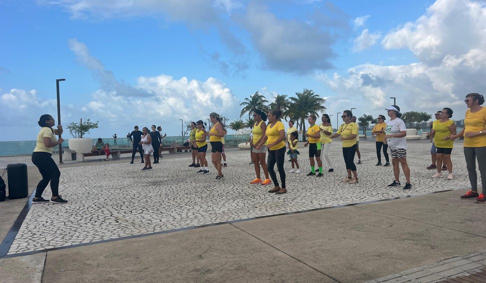 Pela manhã, a primeira turma foi composta por 24 mulheres 50+ do Conjunto Medeiros Neto, se reunindo para uma aula de fitdance, seguida de lanche e confraternização.