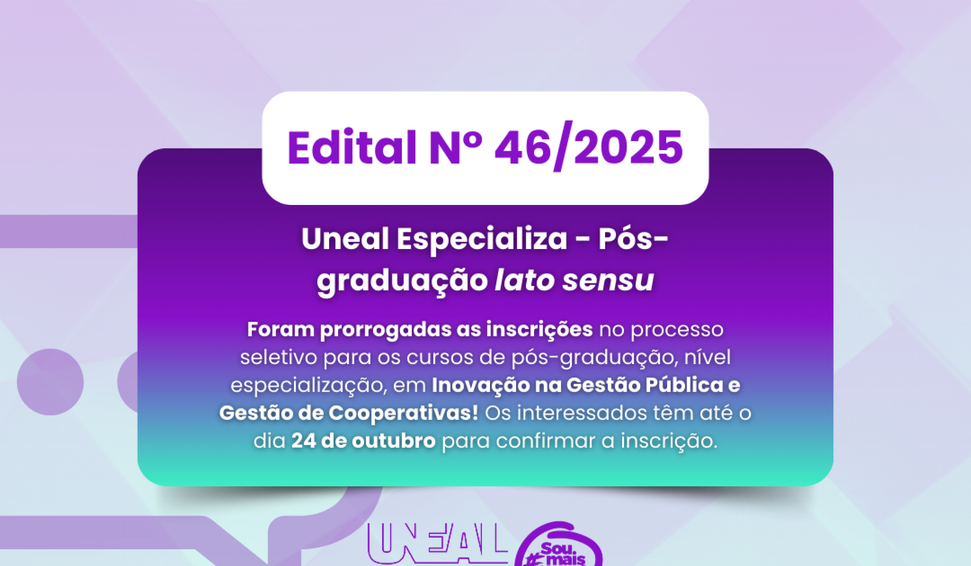 A Universidade Estadual de Alagoas (Uneal), através da Pró-Reitoria de Pesquisa e Pós-Graduação (Propep), lançou o edital de abertura de inscrições para os cursos de pós-graduação Lato Sensu, nível especialização, em Inovação na Gestão Pública, e Gestão de Cooperativas, no Campus VI, em Maceió.