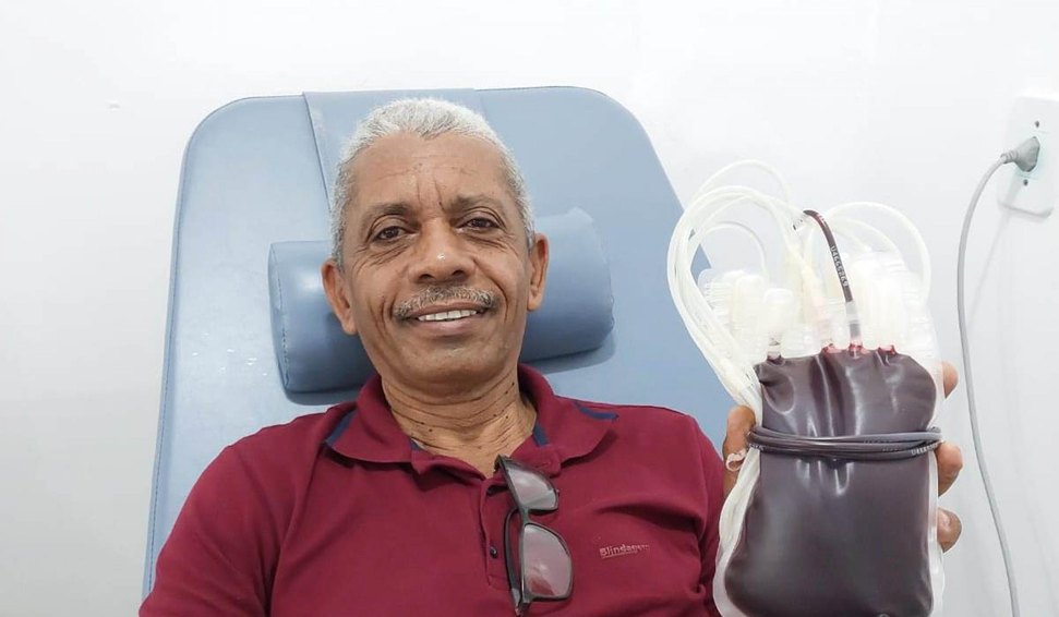 Vidraceiro comemora seis décadas de vida doando sangue no Hemoal