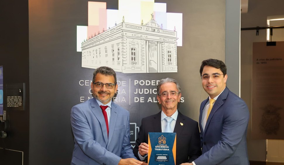 O Prêmio Eficiência Tributária do Conselho Nacional de Justiça (CNJ) conquistado pelo Tribunal de Justiça de Alagoas (TJAL), no último dia 16, vai ficar exposto no Centro de Cultura e Memória (CCM). Nesta sexta (26), o presidente Fábio Bittencourt, acompanhado dos juízes Sandro Augusto dos Santos e Marcelo Pimenta, levou a premiação para fazer parte do acervo do museu.