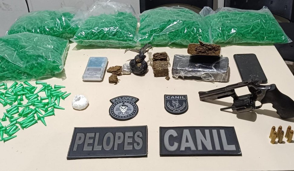 No total, foram recolhidos um revólver calibre 38, seis munições, um quilo de maconha e 90 gramas de cocaína. O material e o suspeito foram levados à delegacia, onde ficaram à disposição da autoridade policial.