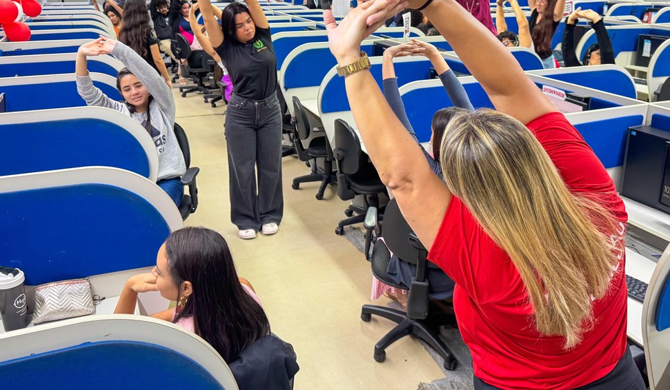 Manoel Soares, técnico de segurança do trabalho da AlmavivA, explicou que as principais demandas dos colaboradores estão relacionadas à ergonomia, especialmente ao longo período em que permanecem sentados. “A parceria com a UNINASSAU é fundamental por proporcionar um momento de cuidado com a saúde, favorecendo o alongamento e o alívio de desconfortos pontuais. Realizamos frequentemente exercícios ergonômicos e oferecemos orientações sobre postura adequada durante o trabalho”.
