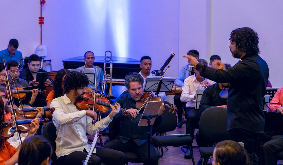 A orquestra convida o público a embarcar em uma viagem pelas sonoridades nordestinas, onde baião, frevo, xote e forró ganham roupagens sinfônicas, revelando novas nuances de clássicos da nossa música.