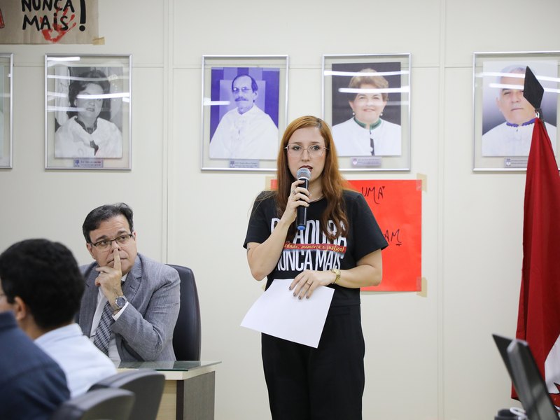 Professora do Instituto de Ciências Biológicas e da Saúde (ICBS), Iracilda Moura é marcada até hoje pelas lembranças de seu tio Manoel Lisboa no cotidiano familiar, sequestrado pelos militares quando ela ainda era uma criança. Em relato histórico durante a reunião que aprovou a diplomação, Iracilda resgatou memórias afetivas com seu tio que ressoam no seu presente. “É preciso manter viva a memória daqueles que de forma compulsória sacrificaram sua vida pela democracia e por condições dignas para o povo brasileiro. Esta diplomação é uma iniciativa de destaque para manter presente a memória de Manoel Lisboa de Moura, 52 anos após sua morte.”, ressaltou.