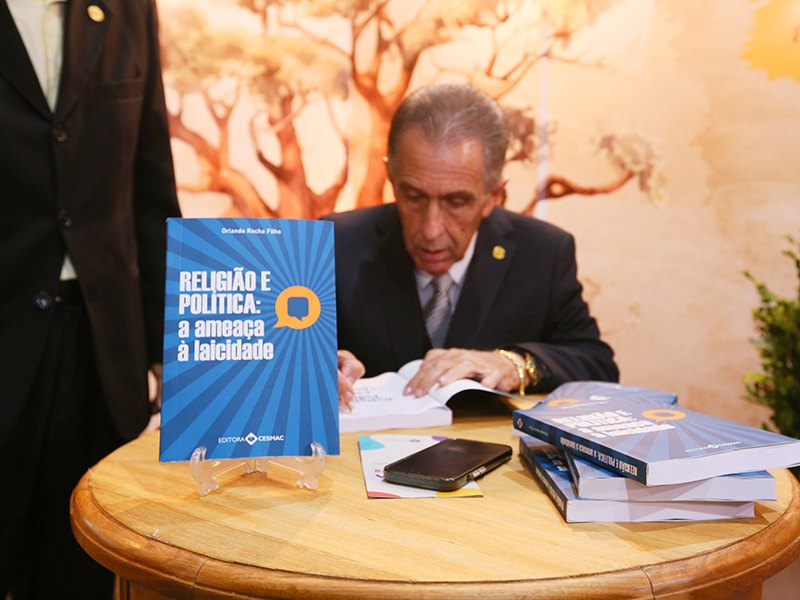 O desembargador Orlando Rocha lançou, nesta terça-feira (4), o livro "Religião e Política: a ameaça à laicidade", na XI Bienal Internacional do Livro de Alagoas. A solenidade foi realizada no estande da Escola Superior da Magistratura de Alagoas (Esmal).
