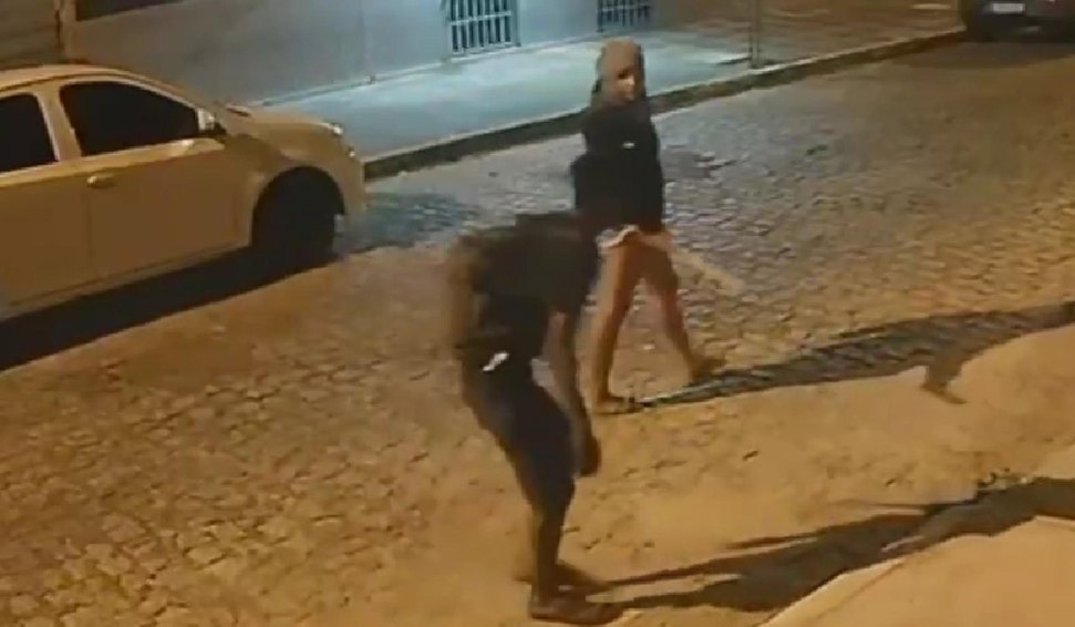 Enquanto o “Autor 1” entra no terreno, a “Autora 2” permanece do lado de fora, aparentemente supervisionando a ação. Pouco tempo depois, o homem retorna, saltando novamente o tapume, e se reúne com as duas mulheres. As filmagens ainda indicam que a “Autora 2” segura um pedaço de pau, apontado como possível arma branca.
