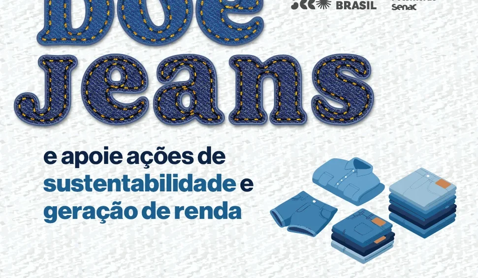 Do dia 7 ao dia 30 de janeiro, o Sesc Mesa Brasil promove a campanha “Jeans do Bem”, com o objetivo de arrecadar peças em jeans para o Projeto Mesa de Costura, iniciativa que alia sustentabilidade, capacitação profissional e geração de renda, beneficiando mulheres em situação de vulnerabilidade social atendidas por instituições cadastradas no Programa Sesc Mesa Brasil.