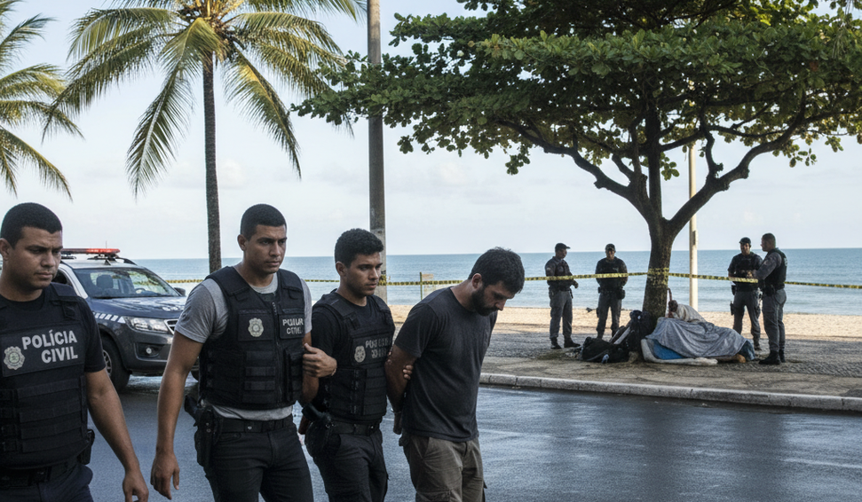 O crime aconteceu no bairro da Ponta Verde, em Maceió, tendo como vítima um indivíduo em situação de rua, que dormia no local no momento da agressão.
