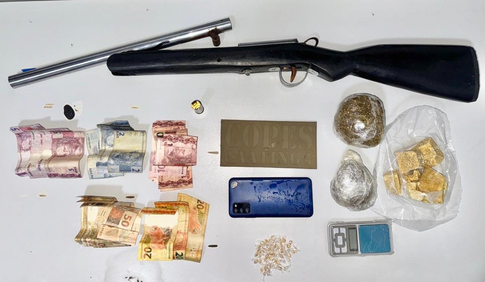 Na noite de sábado (10), em Piranhas, agentes da Companhia Independente de Operações Policiais Especiais do Sertão (Copes) prenderam um homem de 30 anos por tráfico de drogas. Durante a ação, foram apreendidos uma espingarda artesanal calibre 20, 214,6g de crack, 196g de maconha, R$ 392 em espécie, uma balança de precisão e um celular.
