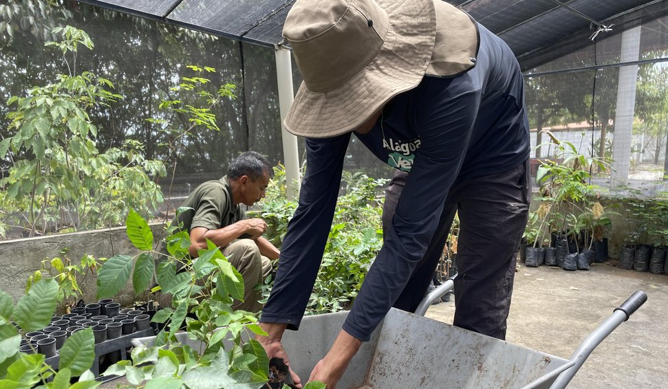 Aroeira-vermelha (Schinus terebinthifolia), ingá (Inga edulis), ipê-amarelo (Handroanthus ochraceus) e saboneteira (Sapindus saponaria) estão entre as espécies nativas utilizadas no projeto, presentes nos biomas da Mata Atlântica e da Caatinga.