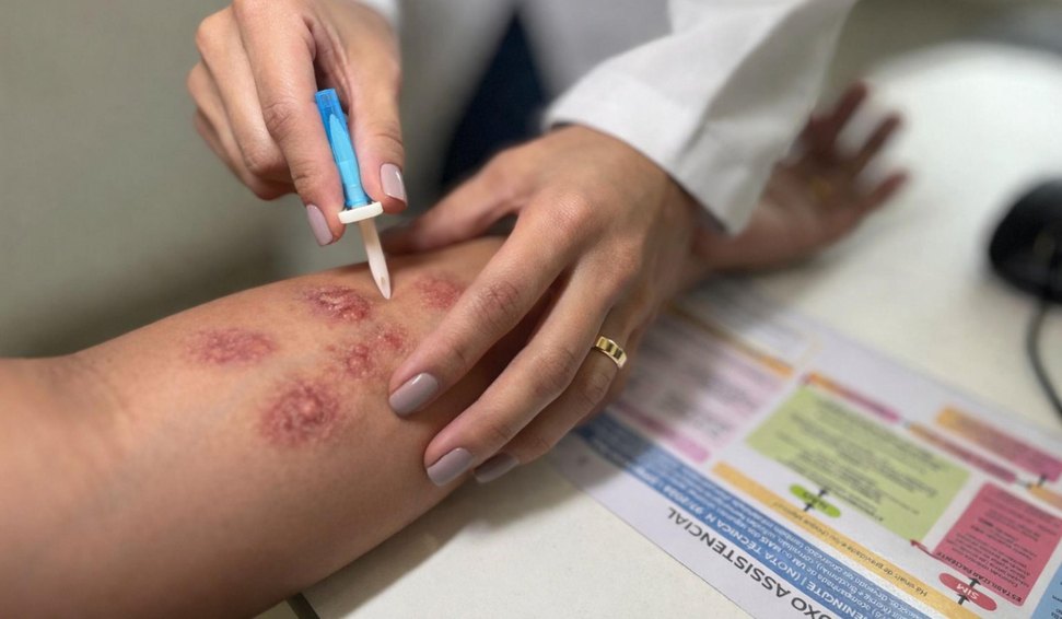 O atendimento começa na porta de entrada da unidade, onde pacientes são avaliados clinicamente ao apresentarem sinais e sintomas compatíveis com a hanseníase. Entre os principais sintomas estão manchas claras ou avermelhadas na pele com perda ou diminuição da sensibilidade ao toque, dor ou calor, áreas dormentes, formigamento, perda de força muscular — especialmente nas mãos e nos pés — além de espessamento de nervos, que podem provocar limitações funcionais se não tratados precocemente.