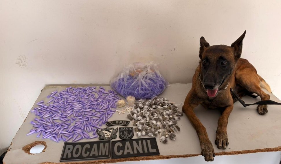 As drogas estavam dentro de uma sacola plástica, abandonada por um suspeito que tentou fugir ao perceber a aproximação das equipes do Canil do 3º Batalhão. Os policiais estavam no local para averiguar informações sobre um indivíduo suspeito de envolvimento em homicídios na região.