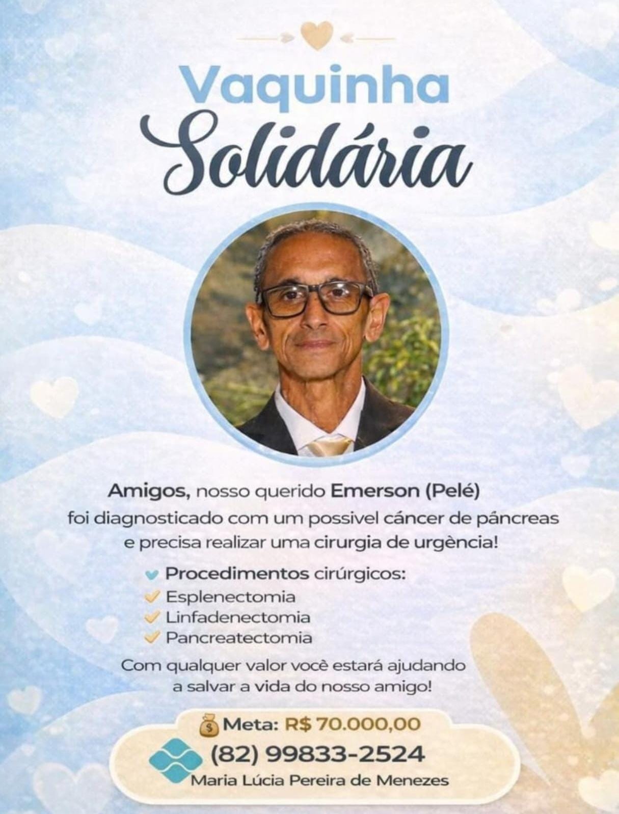 De acordo com informações divulgadas na campanha, os procedimentos indicados incluem esplenectomia, linfadenectomia e pancreatectomia — intervenções de alta complexidade que exigem estrutura hospitalar especializada e custos elevados.