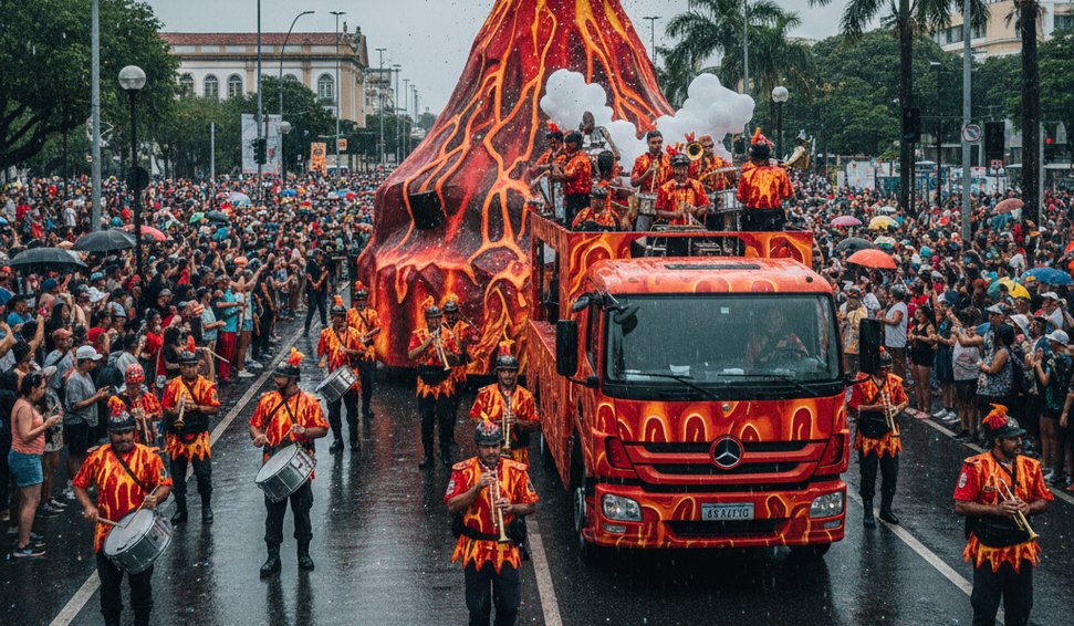 “Só pode ser o Vulcão. É com certeza o Vulcão”, ecoou o refrão do hino “Toque de Reunir”, composto por Edécio Lopes especialmente para o bloco da PM. Do alto do trio, uma das vozes da Banda Vulcão falou sobre o sentimento de alegria, honra e a expectativa por mais uma edição: “Este é o meu quarto ano participando e posso dizer que a gente só evolui. Ano após ano, mostramos essa cultura incrível que é a tradição do Bloco Vulcão”, afirmou, em nome do Centro Musical, a sargento Cláudia Pollyane.