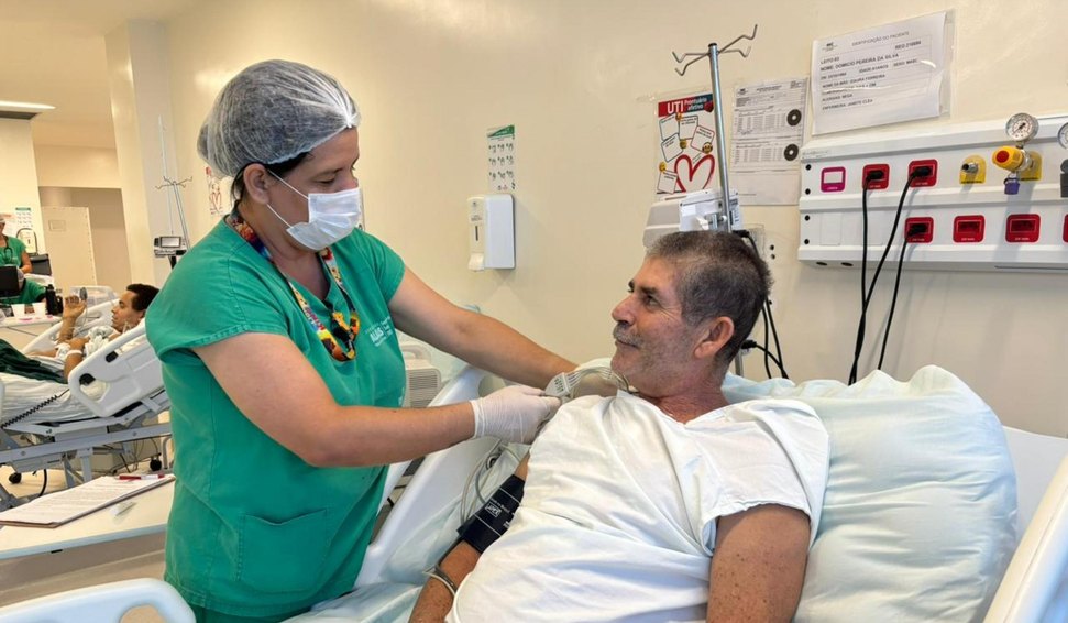 O atendimento ágil e especializado do Hospital do Coração Alagoano, em Maceió, foi fundamental para salvar a vida de Domício Pereira da Silva, 61 anos, ex-militar vítima de um infarto agudo do miocárdio. Domício foi inicialmente atendido no Hospital Regional de Arapiraca e, após regulação, transferido para a capital por meio do Programa Bate Coração – uma iniciativa do Governo de Alagoas que garante rapidez no diagnóstico, regulação e tratamento de pacientes com suspeita ou confirmação de infarto.