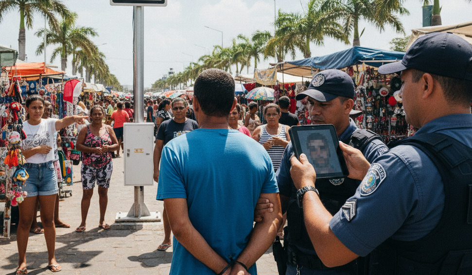O sistema emitiu um alerta assim que o indivíduo passou pela área monitorada. Com a confirmação da identidade, equipes do Centro Integrado de Operações da Segurança Pública (CIOSP) passaram a acompanhar o suspeito em tempo real pelas câmeras do entorno.