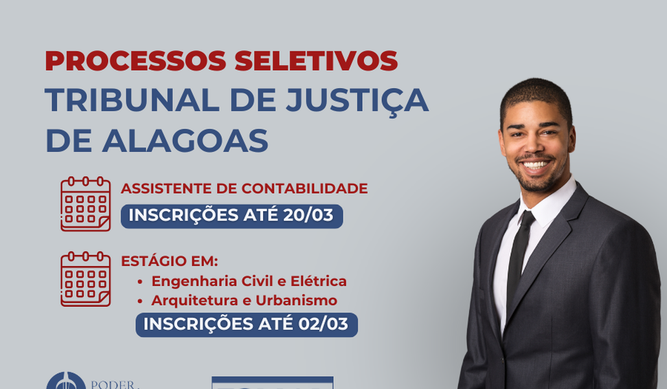 O Tribunal de Justiça de Alagoas (TJAL), por meio da Escola Superior da Magistratura (Esmal), anunciou a abertura de três processos seletivos estratégicos. As oportunidades contemplam desde estudantes de graduação até profissionais graduados em Ciências Contábeis, com foco na modernização das equipes de engenharia e contabilidade do Poder Judiciário.