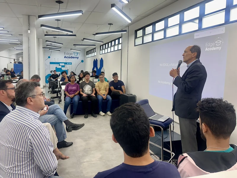 A programação teve início na terça-feira (24), na sede do Edge, localizada no Centro de Inovação, do Jaraguá. Durante a visita, o dirigente e sua comitiva conheceram a infraestrutura da Unidade, a equipe técnica e projetos estratégicos em desenvolvimento. Também integram a comitiva da Embrapii o diretor de Planejamento e Gestão, Guilherme Calheiros, e o gerente de Acompanhamento das Unidades Embrapii, Renato Mariano de Sá.