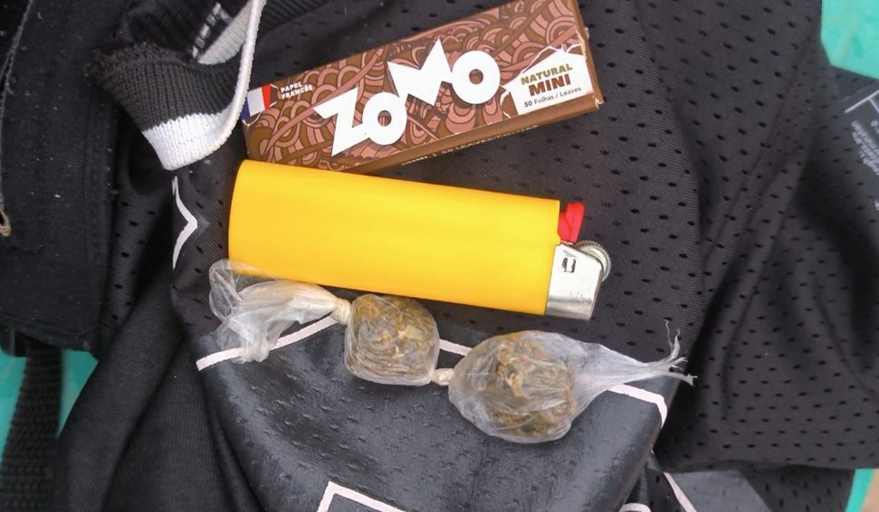 A equipe do PO Marco dos Corais foi acionada pelo COPOM depois que as câmeras registraram dois indivíduos consumindo uma substância análoga à maconha no local. Ao chegarem, os agentes abordaram os suspeitos, de 36 e 21 anos. Durante a revista, foram encontrados dois papéis da substância, além de materiais para consumo.