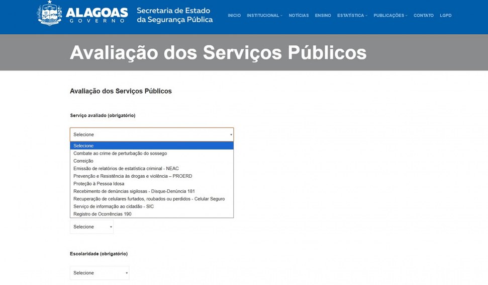 A Secretaria de Estado da Segurança Pública (SSP) de Alagoas lançou um formulário para que a população avaliasse os serviços oferecidos pela massa. A iniciativa integra o modelo de governança e gestão pública, alinhada às diretrizes dos Governos de Alagoas e do Brasil.