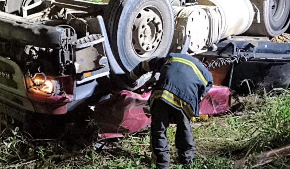 Corpo de Bombeiros resgata vítima presa às ferragens após tombamento de carreta em Mata Grande