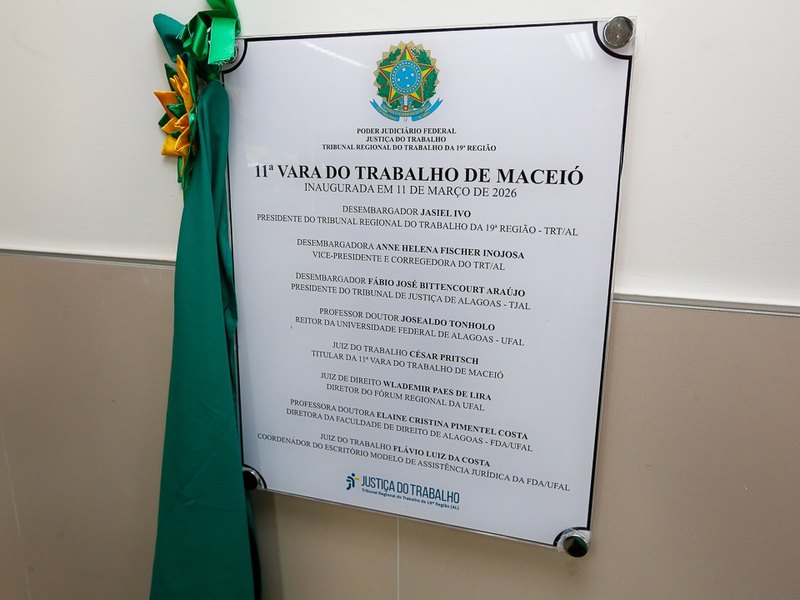 O Fórum Regional da Universidade Federal de Alagoas (Ufal) passou a contar com a 11ª Vara do Trabalho de Maceió. A unidade foi inaugurada nesta quarta-feira (11), com a presença do presidente do TJAL, desembargador Fábio Bittencourt, e do presidente do Tribunal Regional do Trabalho da 19ª Região (TRT/AL), desembargador Jasiel Ivo.