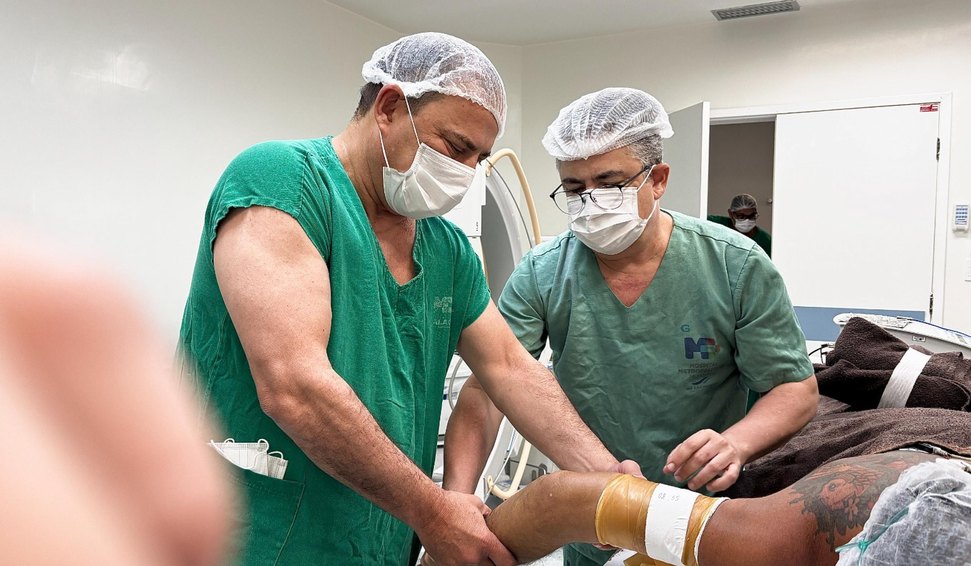 Além disso, o procedimento incluiu a colocação de um enxerto ósseo, que auxilia na consolidação da fratura e favorece a recuperação do paciente. Segundo o médico, esse tipo de intervenção apresenta bons índices de sucesso quando realizada de forma adequada.