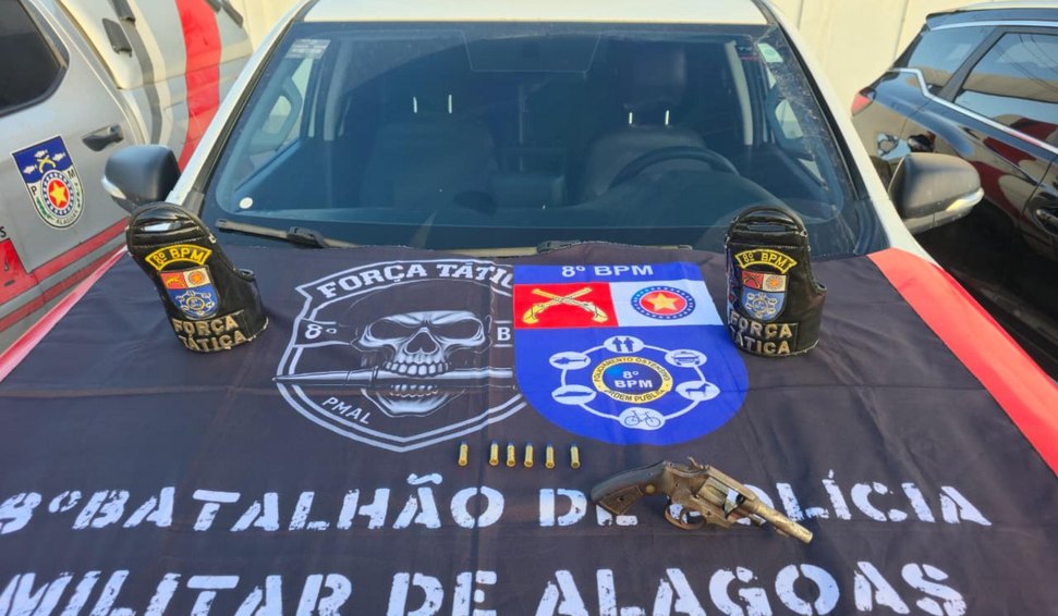Após a abordagem, os policiais recuperaram um revólver calibre 38, com seis munições intactas. O responsável pela arma foi detido e levado à delegacia local.