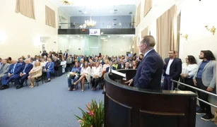 Com 40 anos de magistratura, o homenageado também discursou emocionado e ressaltou que a honraria vai além de um reconhecimento individual. “Receber a comenda, a mais alta honraria concedida por esta respeitável Casa Legislativa, representa uma distinção que ultrapassa qualquer mérito que seja individual. É um reconhecimento a uma caminhada que foi construída ao longo de décadas de trabalho, de muita dedicação, de muito compromisso com o Estado de Alagoas e com seu povo”, declarou Rocha Filho. O desembargador ainda destacou sua atuação como educador e o compromisso de manter um perfil acessível no exercício da função. “Ao longo da minha trajetória de magistrado, eu procurei ser aquele magistrado acessível. Todas as pessoas que me procuram, eu faço questão de atender”, disse. “Eu vou continuar contribuindo, ainda que modestamente, como é o meu perfil de homem simples, para a construção de um Estado cada vez mais justo, um Estado cada vez mais fraterno”, completou.