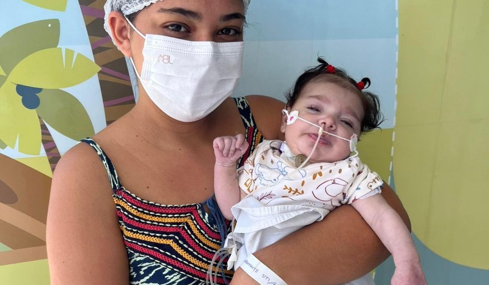 Aylla Sophia, de 2 meses, está internada na UTI após cirurgia cardíaca e apresenta melhora clínica