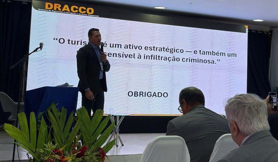 A Polícia Civil participa do evento por meio do delegado Igor Diego, que atua como palestrante, apresentando o tema “Análise de Risco do Turismo no Brasil: facções e organizações criminosas”.