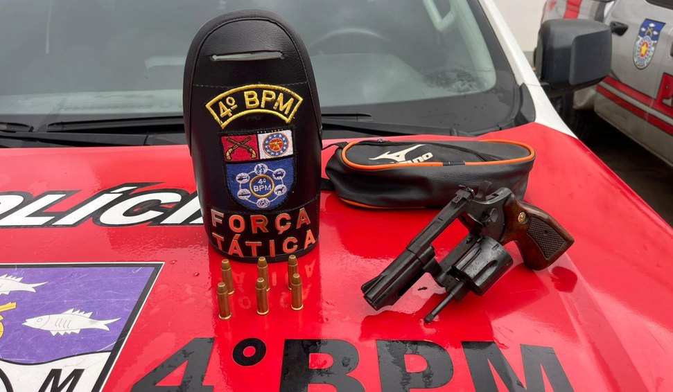 Durante o patrulhamento, as guarnições Força Tática I e II avistaram o suspeito tentando fugir e se desfazer de uma sacola plástica. O homem foi rapidamente alcançado e abordado, sendo encontrado com um revólver calibre 38 e seis munições intactas.