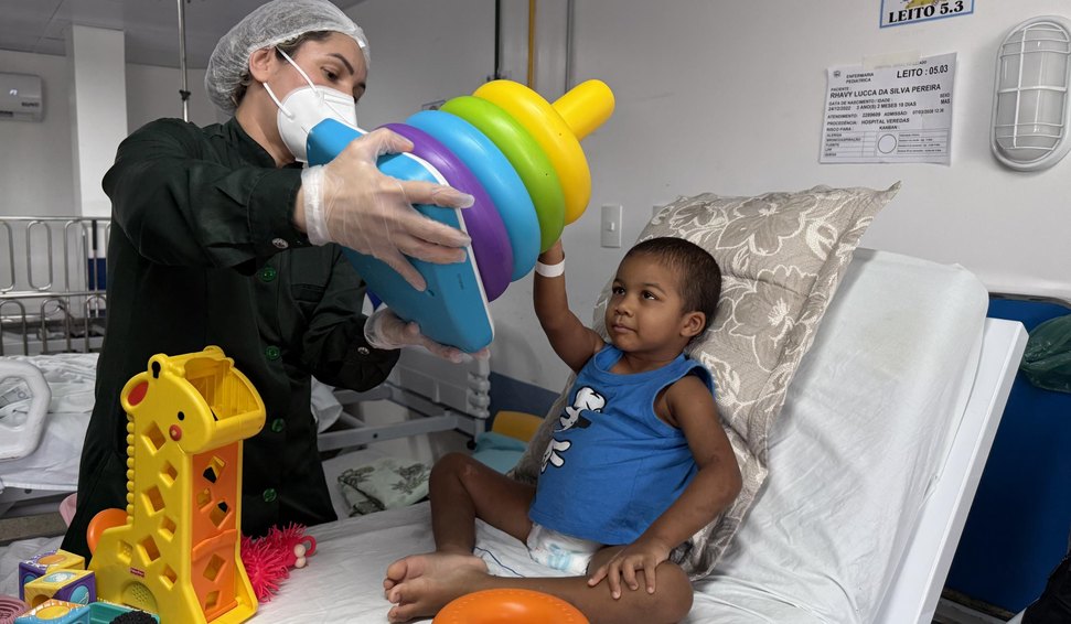 "Mas, quando ele chegou aqui na Enfermaria Pediátrica, a nossa equipe sofreu com os esforços para a recuperação de sua saúde e iniciou o processo de reabilitação, com assistência da Fisioterapia, Terapia Ocupacional e Fonoaudiologia. Ao passar dos dias, mesmo diante de um cenário tão duro, a história começou a ganhar novos contornos e vem animando todos nós", relatada a médica do HGE.