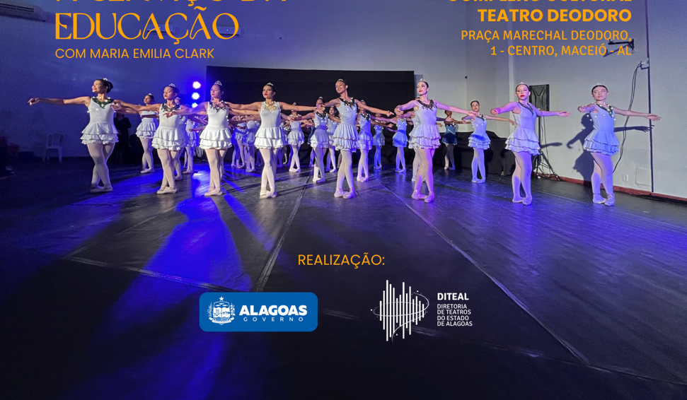 A Diretoria de Teatros do Estado de Alagoas (Diteal), em parceria com a bailarina Maria Emília Clark, realiza no próximo 11 de abril (sábado) a seletiva 2026 do projeto Ballet à Serviço da Educação. A ação integra o programa “Formação do Bailarino Clássico e Projetos Coreográficos Diversos”, iniciativa gratuita que há 10 anos contribui para a formação artística de estudantes da rede pública de Alagoas.